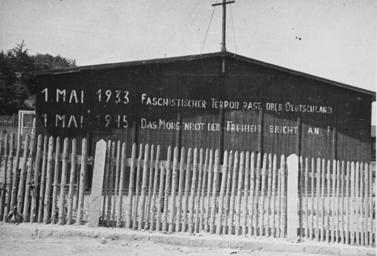 | Keywords: Buchenwald Barracks 75028.jpg View of an inscription printed in large block letters on the wall of a barrack in the Buchenwald concentration camp The inscription on the building reads 1 May 1933 Fascist terror reigns over Germany 1 May 1945 Sunrise brings the dawn of freedom The original photo caption reads Shows where people have been there since 1933 Buchenwald was in full swing about 1935 Thousands died daily from typhus dysentery and T B Most of them died in the crematory or the lime pit William B Duff served in the 117th Infantry Medical Detachment as a surgical technician He participated in the invasion of Normandy and the fighting in Northern France the Rhineland Central Europe and the Ardennes He also helped provide medical assistance to survivors of the Buchenwald concentration camp Photographed by William B Duff Buchenwald Thuringia Germany April 1945 - May 1945 http //www ushmm org/ United States Holocaust Memorial Museum courtesy of Marilyn Sutherland PD-USGov Buchenwald barracks Buchenwald liberation Images from the United States Holocaust Memorial Museum |