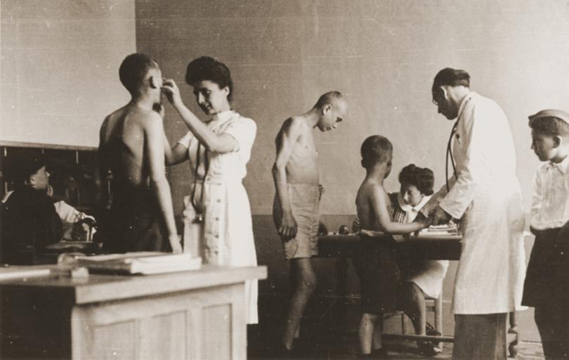 | Keywords: Buchenwald Children 26145.jpg Children liberated at Buchenwald are examined by medical personnel Pictured on the far right is Salek Finkelstein The medical doctor on the left is Françoise Brauner 1911-2000 The Buchenwald children were a group of approximately 1000 Jewish child survivors found by American troops when they liberated the Buchenwald concentration camp on April 11 1945 Most of the children were originally from Poland though others came from Hungary Slovenia and Ruthenia Unsure of what to do with the child survivors American army chaplains Rabbi Herschel Schacter and Rabbi Robert Marcus contacted the offices of the OSE Oeuvre de Secours aux Enfants Jewish children's relief organization in Geneva They arranged to send 427 of the children to France 280 to Switzerland and 250 to England Vivette Samuels reverses the figures for England and Switzerland in her monograph Sauver les Enfants On June 2 1945 OSE representatives arrived in Buchenwald and together with Rabbi Marcus escorted the transport of children to France Rabbi Schacter accompanied the second transport to Switzerland Because of the difficulty in finding clothing for the children the boys were clad in Hitler Youth uniforms This created a problem for when the train crossed into France it was greeted by an angry populace who assumed the train was carrying Nazi youth Thereafter the words KZ Buchenwald orphans were painted on the outside of the train to avoid confusion On June 6 1945 the French transport arrived at the Andelys station and the orphans were taken to a children's home in Ecouis Eure The home had been set up to accommodate young children but in fact only 30 of the boys were below the age of 13 This was only one of the many problems faced by the OSE personnel who were not prepared to handle a large group of demanding rebellious teenagers who were full of anger for what they had experienced At Ecouis the boys were given medical care counseling and schooling until more permanent accommodations could be found Most of the children remained only four to eight weeks at Ecouis before being moved elsewhere and the home was closed in August 1945 Among the first to leave were a group of 173 children who had family in Palestine They were given immigration certificates and departed from Marseilles in July aboard the British vessel the RMS Mataroa The remaining boys at Ecouis were soon transferred to other residences and homes Some of the older ones were sent to the Foyer d'Etudiants located on the rue Rollin in Paris where they boarded while attending vocational training courses or working at jobs in the city Others were sent to the Chateau de Boucicaut home in Fontenay-aux-Roses Hauts-de-Seine Many of the boys came from religiously observant homes Since the OSE could not obtain kosher food for everyone they divided the children into religious and non-religious groups Dr Charly Merzbach offered OSE the use of his estate the Chateau d'Ambloy Loir-et-Cher for the summer and between 90 and 100 boys chose to go there in order to receive kosher food and live in a religious environment In October 1945 the children and staff of Ambloy were relocated to the Chateau de Vaucelles in Taverny Val d'Oise About 50 of the non-religious boys were taken to the Villa Concordiale in Le Vesinet Yvelines near Paris that housed an equal number of French Jewish orphans In the summer they went to the Foyer de Champigny in Champigny-sur-Marne Val-de-Marne In all the homes attended by the Buchenwald children vocational training as well as regular classroom instruction was offered At the same time OSE social workers made every effort to locate surviving relatives succeeding in about half the cases By the end of 1948 all of the Buchenwald children who had come to France had left the OSE fold and begun new lives for themselves Sources Hemmendinger Judith and Krell Robert The Children of Buchenwald Gefen Publishers 2000; Grobman Alex Rekindling the Flame Wayne State University Press 1993; Hazan Katy Chronologie de l'histoire de l'OSE L'action de l'OSE apres la guerre 31 December 2002 Buchenwald Thuringia Germany April 1945 - June 1945 http //www ushmm org/ United States Holocaust Memorial Museum courtesy of Robert Waisman PD-USGov Buchenwald_children Images from the United States Holocaust Memorial Museum |