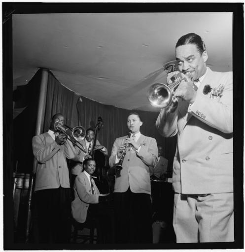 | Keywords: Buck Clayton (right) with Ted Kelly, Kenny Kersey, Benny Fonville, (Scoville) Toby Browne, Shep Shepherd, and Buck Clayton, Café Society (Downtown), New York, N.Y., ca. June 1947 (William P. Gottlieb).jpg en Buck Clayton right with Ted Kelly Kenny Kersey Benny Fonville Scoville Toby Browne and Shep Shepherd Café Society Downtown New York N Y ca June 1947 Photograph by William P Gottlieb http //lcweb2 loc gov/diglib/ihas/loc natlib gottlieb 01381/enlarge html page 1 section ver01 size 1024 from Creator William P Gottlieb 1947-06 PD-Gottlieb Photographs by William P Gottlieb Black and white photographs of the United States in the 1940s Buck Clayton Café Society |