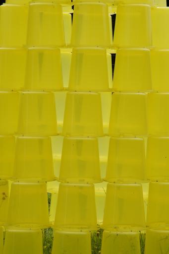 Keywords: bucket stacked yellow green yellow green artwork art object plastic stack