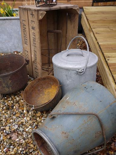 Keywords: bucket zinc container metal equipment vintage garden gardening tool