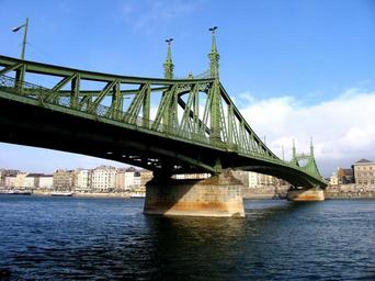 Keywords: budapest bridge blue sky danube river capital pillar liberty bridge scape