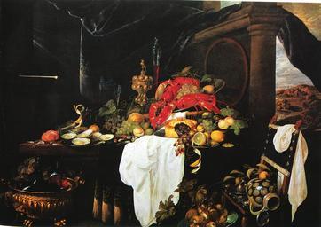 | Keywords: Budapest kunst 0041.tif Artwork Creator Andries Benedetti Still life with lobster Oil on canvas 168 x 240 cm Museum of Fine Arts Budapest date former collection Esterházy master pieces of art of the Museum for Art Budapest public domain The author died more than 200 years ago PD-old-100 Andries Benedetti Still-Life Collections of the Museum of Fine Arts Budapest Grapes in art Still life paintings with oysters | ||||