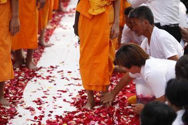 Keywords: buddhists monks walk tradition ceremony thailand thai festival pray holy wat phra dhammakaya temple dhammakaya pagoda more than million budhas gold buddhism