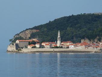 Keywords: budva montenegro old town balkan mediterranean adriatic sea steeple historically booked mountain castle fortress