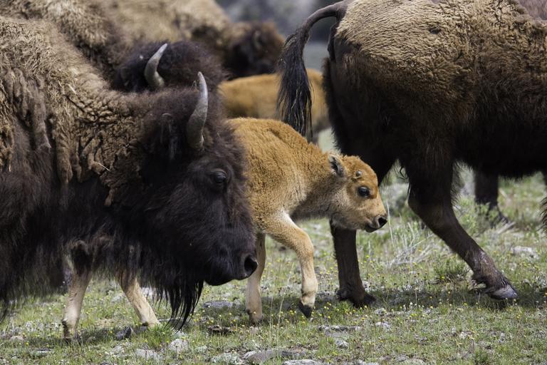 Keywords: buffalo bison american west icon brown fur herd prairie calf mammal animal grazing beast horns food steaks healthy