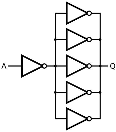 | Keywords: Buffer (5x drive) from NOT.svg Diagram showing a way of making a logical buffer with 3x output drive from the six NOT gates on a hex gate IC eg 4049 Own 2008-12-22 Inductiveload Own work all rights released Public domain Alternative logic gates |