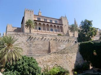 Keywords: building arcades window architecture arches pillar stuetztpfeiler facade historically sky spain mallorca palace king house