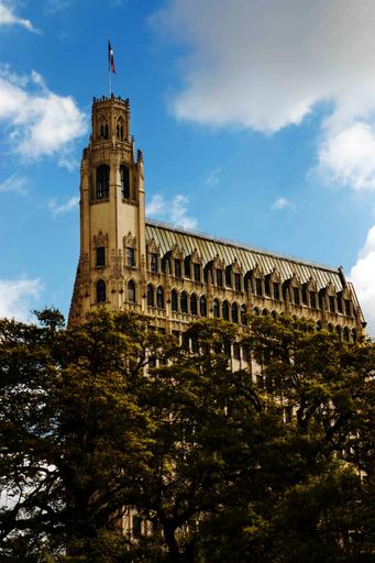 Keywords: building architecture corporate sky city cityscape high perspective structure exterior vintage old business urban concrete blue facade office heritage san antonio texas clouds