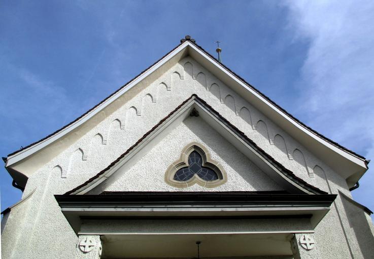 Keywords: building church reformed west portal architecture facade window spire mammern lake constance thurgau switzerland