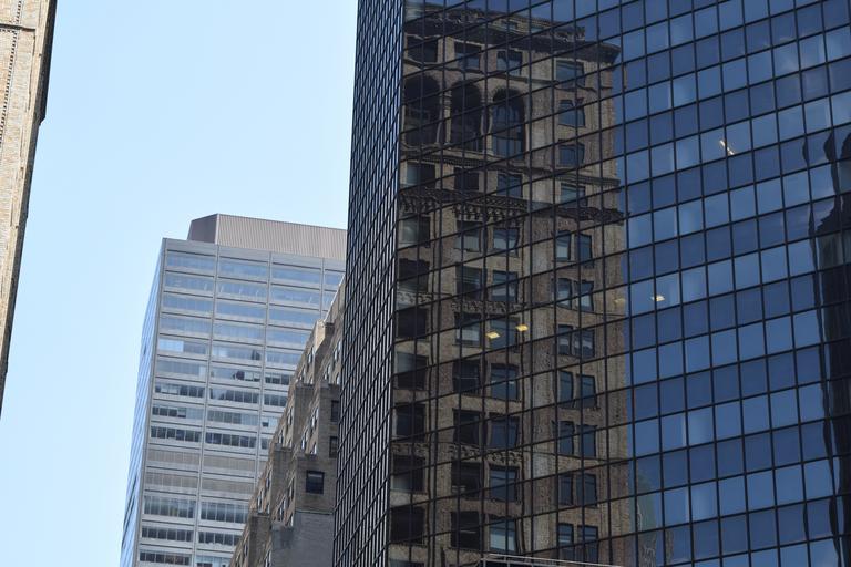 Keywords: building downtown offices reflection old building new building windows new york city nyc