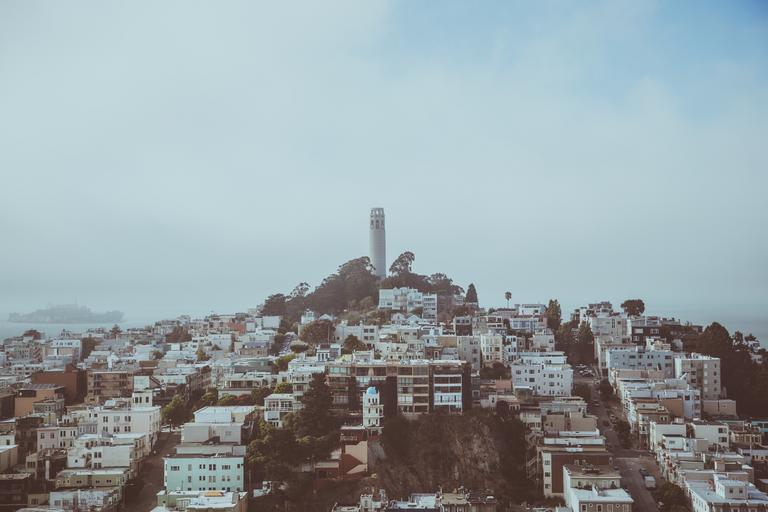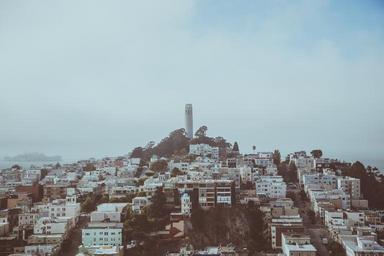 Keywords: building famous san francisco usa america coit tower architecture landmark city travel cityscape urban view destination downtown residential area houses park hill top art deco telegraph