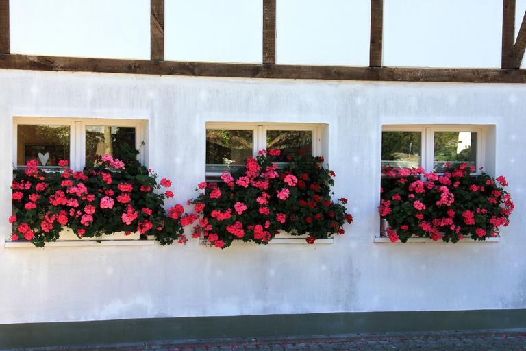 Keywords: building window flowers flower truss fachwerkhaus flower box balcony plants geranium