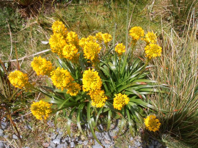 Keywords: Bulbinella triquetra 4.jpg Maori onion Māori onion Bulbinella triquetra growing near Maungahuka Hut 2016-01-04 Own Sarang Bulbinella triquetra Maungahuka Hut