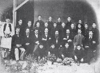 | Keywords: Bulgarian pedagogical school man from Syar.JPG  Bulgarian exarchist school teachers from Syar or Ser today Serres Ivan Garvanov fourth sitting Hristo Matov pre-last sitting Almanach Macedonia page 348 < 1900 Author Anonymous-EU Men of Bulgaria Ivan Garvanov Hristo Matov Serres Greece |