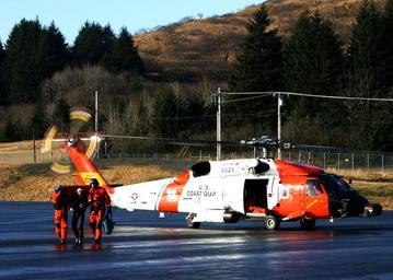 Keywords: BULK CARRIER SUN BULKER RESCUE DVIDS1076797.jpg en KODIAK Alaska Mar 11 2005 --Air Station Kodiak crewmen escort the third injured member of the bulk carrier Sun Bulker from the Jayhawk helicopter to Kodiak emergency medical personnel March 11 The three crewmen were injured aboard the ship while securing a grab bucket in heavy weather on March 10 USCG photo by PA2 Sara Francis 2005-03-11 Petty Officer 2nd Class Sara Mooers https //www dvidshub net/image/1076797 1076797 2013-12-11 17 27 KODIAK AK US PD-USGov Air Station Kodiak Images from DoD uploaded by Fæ |