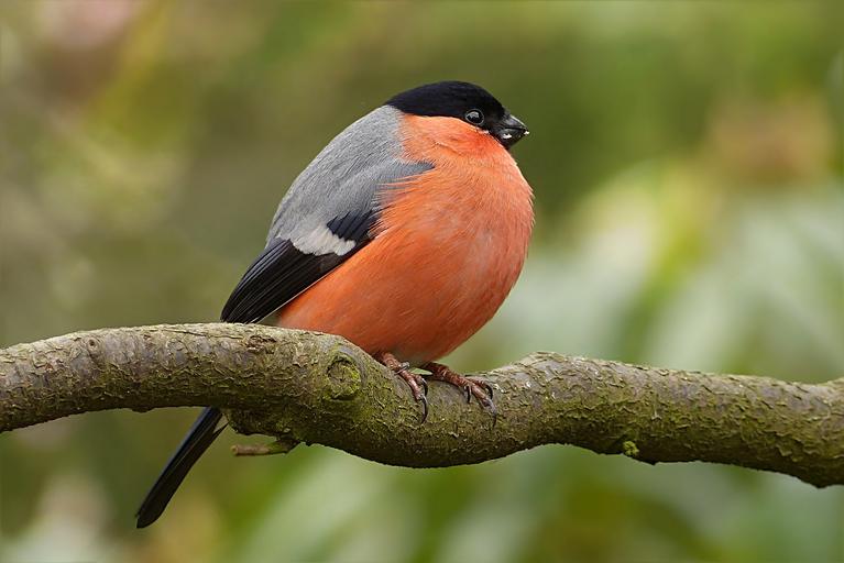 Keywords: bullfinch pyrrhula bird male tree garden foraging