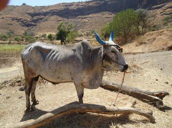 Keywords: bullock animal cattle domestic livestock ox bovine farming ploughing plowing farm work agriculture draught animal cart pulling tied chain india