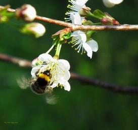 Keywords: bumblebee insect bee cherry blossom cherry tree cherry branch flower blossom flora bumble