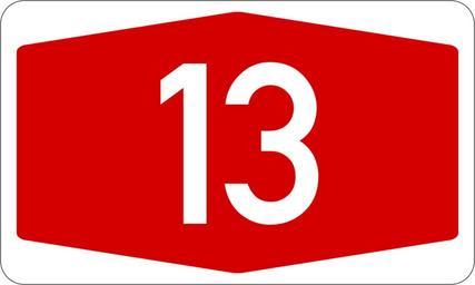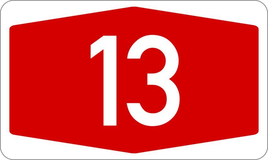 Keywords: Bundesautobahn 13 number red.svg Bundesdeutsche Autobahnnummer Automatisch erzeugt durch 3247 German Autobahn number signet Created automatically by By User Jollyroger for use in swiss autobahns 13 number Switzerland Autobahn Numbers 013