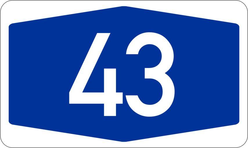 Keywords: Bundesautobahn 43 number.svg Bundesdeutsche Autobahnnummer Automatisch erzeugt durch 3247 German Autobahn number signet Created automatically by 3247 Bundesautobahn numbers 043 43 number
