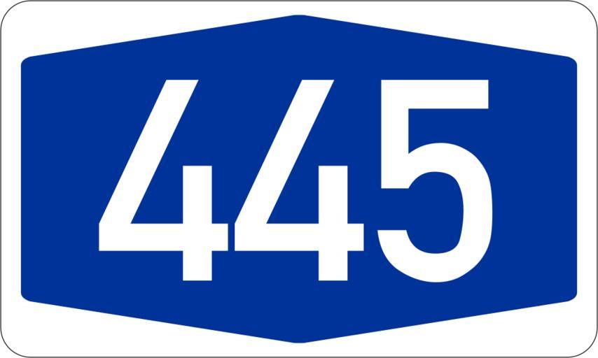 Keywords: Bundesautobahn 445 number.svg Bundesdeutsche Autobahnnummer Automatisch erzeugt durch 3247 German Autobahn number signet Created automatically by 3247 Bundesautobahn numbers 445 445 number