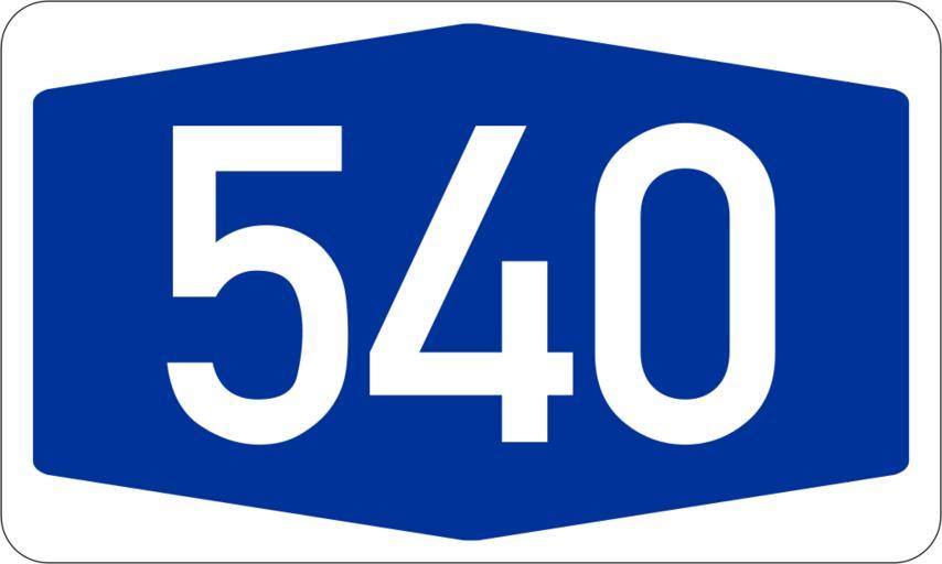 | Keywords: Bundesautobahn 540 number.svg Bundesdeutsche Autobahnnummer Automatisch erzeugt durch 3247 German Autobahn number signet Created automatically by 3247 Bundesautobahn numbers 540 Bundesautobahn 540 540 number Bundesautobahn Diagrams of blue and white road number signs |