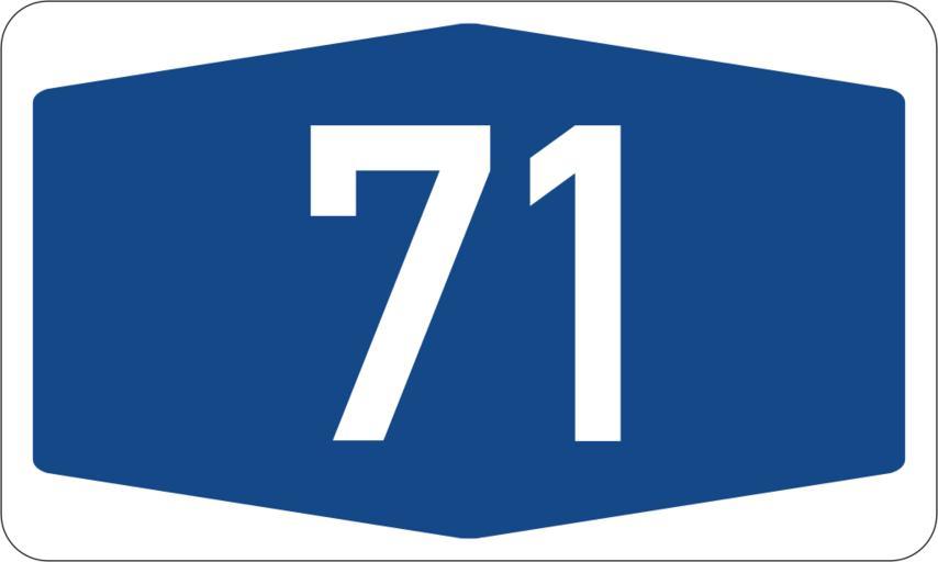 Keywords: Bundesautobahn 71 number.svg Bundesdeutsche Autobahnnummer Automatisch erzeugt durch 3247 German Autobahn number signet Created automatically by 3247 Bundesautobahn numbers 071 71 number