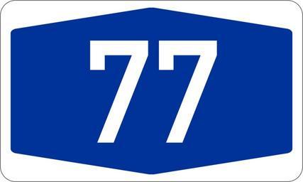 | Keywords: Bundesautobahn 77 number.svg Bundesdeutsche Autobahnnummer Automatisch erzeugt durch 3247 Anmerkung Diese Autobahn existiert nicht war oder ist jedoch geplant Dieses Bild wurde für die Nutzung in Artikeln über die Planung erstellt German Autobahn number signet Created automatically by 3247 Note This road does not currently exist but is or was planned The number sign is supposed to be used in articles about the planned road Bundesautobahn numbers 077 77 number | ||||
