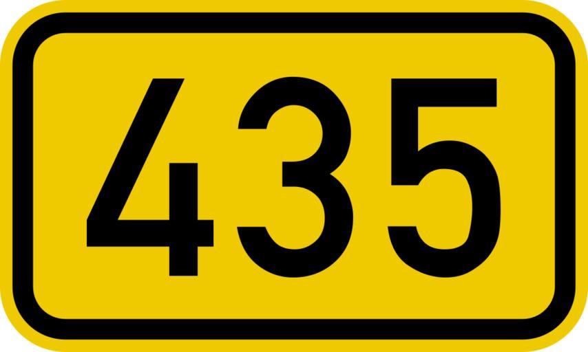 Keywords: Bundesstraße 435 number.svg Bundesdeutsche Bundesstraßennummer Automatisch erzeugt durch 3247 German Federal Road Bundesstraße number signet Created automatically by 3247 Bundesstraßen numbers 435 svg 435 number