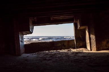 Keywords: bunker sea sand ocean sun danish west coast denmark waves footprints cement heavy sky blue water søndervig germany hitler occupation soldiers blue sky