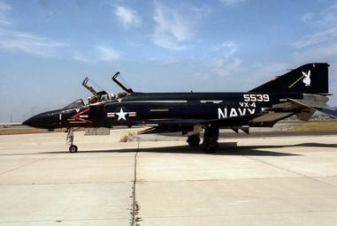 Keywords: Bunny F-4S VX-4 at Point Mugu 1982.JPEG A U S Navy McDonnell F-4S Phantom II BuNo 155539 from Test and Evaluation Squadron 4 VX-4 at Naval Air Station Point Mugu California USA in 1982 This aircraft was retired to the AMARC as 8F0222 on 2 May 1986 http //www defenseimagery mil U S DefenseImagery photo VIRIN http //www defenseimagery mil/imagery html guid 9fe604964d6d8ca2b1bd21d28b92495eeecc5028 DN-SC-83-10432 1982-07-14 PH2 Chris Holmes USN PD-USGov-Military-Navy F-4S Phantom II Air Test and Evaluation Squadron 4 United States Navy Pacific Missile Test Center Point Mugu Playboy bunny logos Black aircraft |
