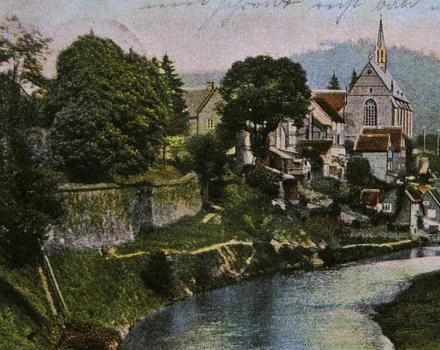 | Keywords: Burg2Beyenburg.jpg Beyenburg von Westen Postkarte 1904 ru Байенбу г видж с запада на пе еднем плане остаток стены замка с почтовой ка точки 1904 года own 1904 author PD-old Burg Beyenburg Postcards of Wuppertal 1904 in Wuppertal Beyenburger Klosterkirche |