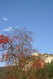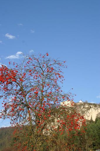 Keywords: burg arnsberg altmühl valley altmühltal nature park autumn rowanberries mountain ash blue sky