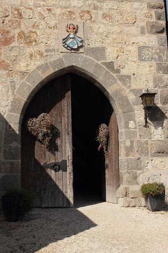 Keywords: burg katzenstein castle gate input old door intake gate stone castle wood portal hinged door middle ages metal fitting wrought iron