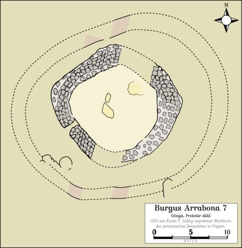 | Keywords: Burgus Arrabona 7, Nagyszentjános – Proletár-dűlÅ‘, Ungarn.svg de Burgus Arrabona 7 Nagyszentjános “ Proletár-dűlÅ‘ Ungarn 1975 durch Eszter T SzÅ‘nyi ergabene Wachturmstelle des nordpannonischen Donaulimes Quelle Zsolt Visy Der pannonische Limes in Ungarn Theiss Stuttgart 1988 ISBN 3-8062-0488-8 S 49 own Mediatus 2014-06-15 Cc-zero Limes Pannonicus | ||||