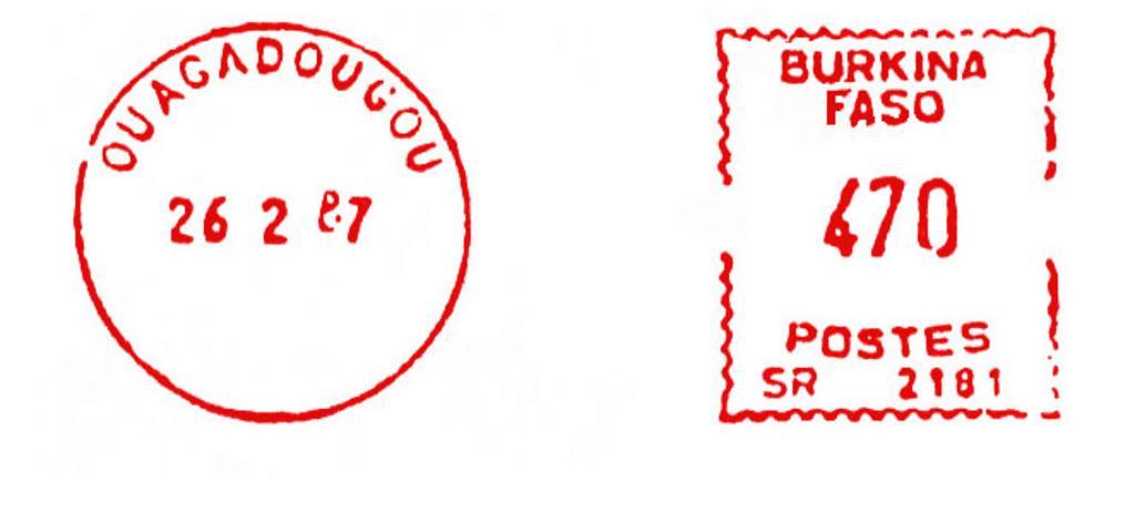 Keywords: Burkina Faso stamp type C1.jpg en Meter stamp catalog image Burkina Faso type C1 Richard Stambaugh Richard Stambaugh 2011-06-13 Cc-zero Meter stamps of Burkina Faso