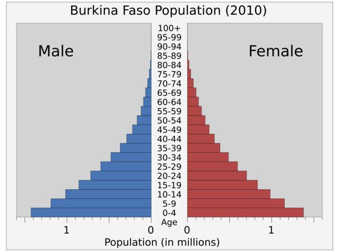 Keywords: Burkina Fasopop-2010.svg translate yes en 2010 population pyramid of Burkina Faso from UN estimates World Population Prospects http //esa un org/unpd/wpp/Excel-Data/population htm The 2012 Revision 2014-08-10 own Delphi234 cc-zero Population pyramids of Burkina Faso Uploaded with UploadWizard |