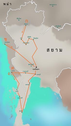 Keywords: Burmese-Siamese war (1765-1767) map - TH - 002.jpg Burmese-Siamese War 1765-1767 Line A Lampang - Tak - Kamphaeng Phet - Sukhothai - Phitsanulok - Ayutthaya; Line B Martaban - Suphan Buri - Ayutthaya; Line C Tavoy - Kanchanaburi - Nonthaburi - Ayutthaya; Line D Tavoy - Mergui - Tenasserim - Chum Phon - Phetchaburi - Nonthaburi - Ayutthaya In this map The territories showed are those at the time being; color 0 00 d4d0c7 Light grey Siamese territories; 0 00 aaa399 Dark grey Burma and her vassals Vientiane Luang Prabang etc ; 0 00 BC987E Pale taupe Third territories Cambodia etc ; 0 00 white The white and grey line Present-day borders; 0 00 ff6600 Orange Advance of Burmese troops as described above The map is modeled on File Burmese-Siamese-war-1765-1767 PNG and File Thailand location map svg The font used is http //www f0nt com/release/th-sarabun-new/ TH Sarabun New a free font This sketch-map is provided for illustrative purposes only สงครามพม่า-ไทย ค ศ 1765-1767 ส้นทาง ก ลำปาง - ตาก - กำแพง พชร - สุโขทัย - พิษณุโลก - อยุธยา ส้นทาง ข มาะตะมะ - สุพรรณบุรี - อยุธยา ส้นทาง ค ทวาย - กาญจนบุรี - นนทบุรี - อยุธยา ส้นทาง ง ทวาย - มะริด - ตะนาวศรี - ชุมพร - พชรบุรี - นนทบุรี - อยุธยา ในภาพ แสดงดินแดนสยาม กับ พื่อนบ้าน ในสมัยสงครามข้างต้น color 0 00 d4d0c7 สี ทาอ่อน ดินแดนสยาม 0 00 aaa399 สี ทา ข้ม ดินแดนพม่า และ มืองขึ้น ลาว ป็นต้น 0 00 BC987E สีสนิม ดินแดนที่ไม่ใช่คู่รบ หรือดินแดนที่สาม กัมพูชา ป็นต้น 0 00 white ส้นสีขาวมีขอบสี ทา ขตแดนในปัจจุบัน 0 00 ff6600 สีส้ม การ ดินทัพของพม่าตาม ส้นทางที่ระบุไว้ข้างต้น แ นที่นี้มีไฟล์สองไฟล์นี้ ป็นต้นแบบ คือ File Burmese-Siamese-war-1765-1767 PNG และ File Thailand location map svg ชุดแบบอักษร font ที่ใช้ คือ http //www f0nt com/release/th-sarabun-new/ TH Sarabun New ซึ่ง ป็นชุดแบบอักษร สรี แ นที่นี้ทำขึ้น พื่อประโยชน์ในการช่วยให้ ห็นภาพ ท่านั้น 2011-08-19 own Aristitleism 150px ในภาษาอังกฤษ - In English thumb left cc-zero Uploaded with UploadWizard Military history of Myanmar Military history of Thailand Maps of the history of Thailand |