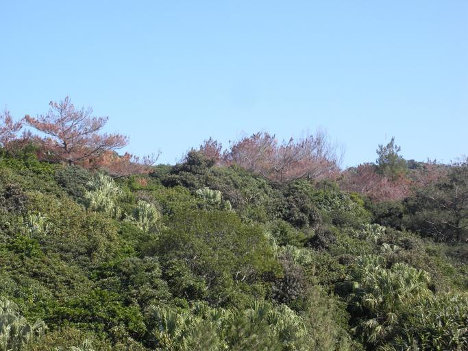 | Keywords: Bursaphelenchus xylophilus in Bonin Islands.jpg en Bursaphelenchus xylophilus killing pines in Japan Bonin Islands Chichijima Island ja 小笠原諸島父島旭平における リュウキュウマツの 枯れ own タクナワン Cc-zero Ogasawara National Park Dead Pinus Bursaphelenchus xylophilus |