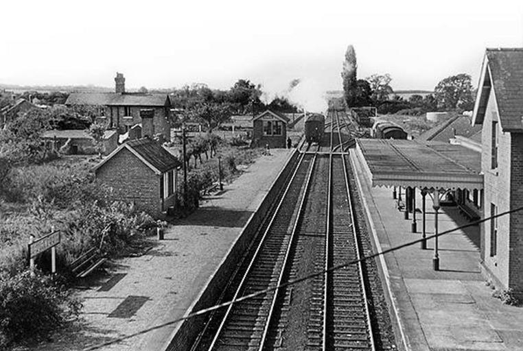 Keywords: 52 16N 0 19E Burwell railway station, 1957, was on the Cambridge and Mildenhall branch of the Great Eastern Railway. 2 June 1884 Opened. 18 June 1962 Closed.