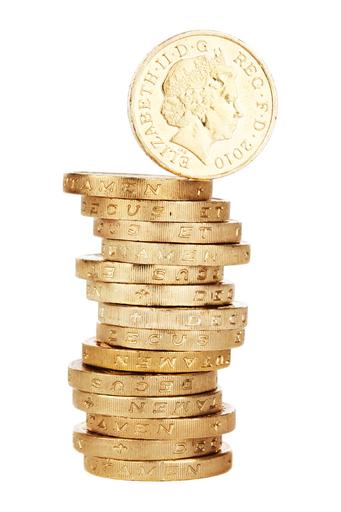 Keywords: business cash coin concept credit currency finance financial gold golden isolated market money pile pound savings stack stock wealth white