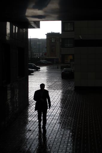 MAKE A MEME View Large Image businessman silhouette walking rain intent man male office suit