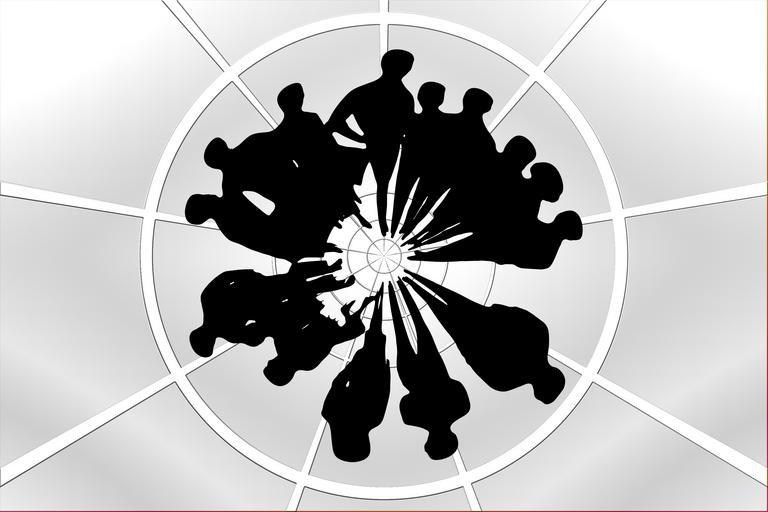 Keywords: businessmen center central team cooperation personal group together middle target visor focal point coordinates spherical ball geometry world universe about lines bent arched