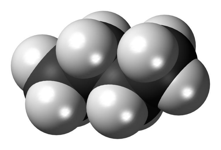 | Keywords: Butane 3D spacefill.png Space-filling model of the butane molecule a fuel gas commonly used in lighters and camping stoves Colour code 505050 Carbon C black<br> F0F0F0 Hydrogen H white<br> 2012-07-25 own DS Visualizer Jynto talk Ball-and-stick version Space-filling version cc-zero Butane Images by Jynto |