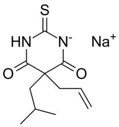 | Keywords: Buthalital sodium.svg Chemical structure of buthalital sodium Bayinal Baytinal Thialbutal Transithal Ulbreval or buthalitone Own 16 41 21 May 2012 UTC Ed Edgar181 150px Barbiturates Thiocarbonyl compounds Sodium salts of organic compounds Allyl compounds Isobutyl compounds |