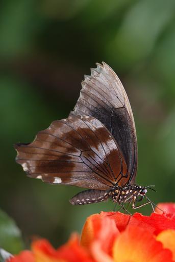 Keywords: butterfly animal insect elymnias hypermnestra nature animals brown white green leaves red flower red rose rose flora