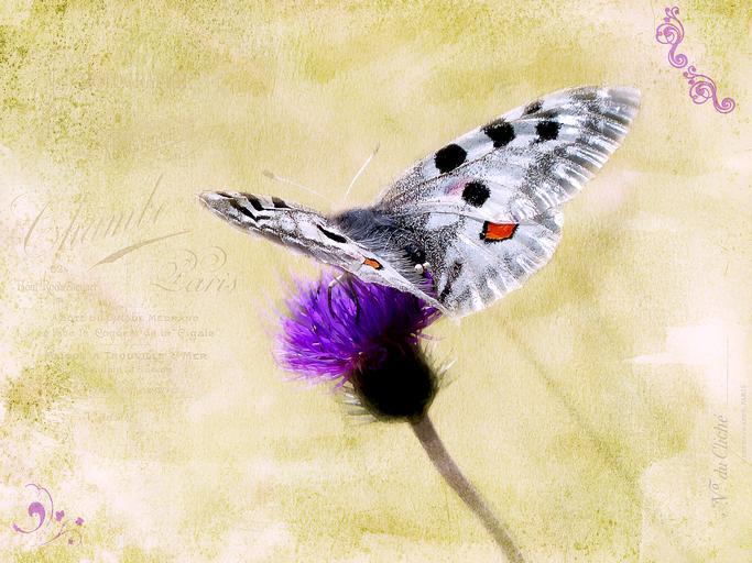 Keywords: butterfly apollo flower blossom bloom vintage painting greeting card