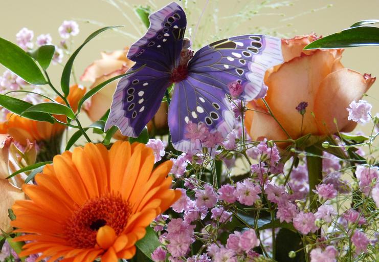 Keywords: butterfly birthday bouquet gerbera rose blossom bloom flower bouquet gypsophila flowers