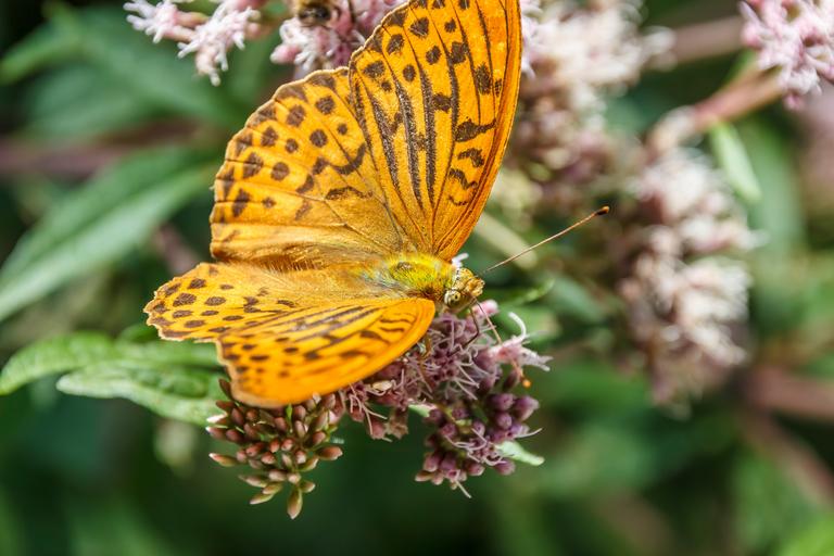 Keywords: butterfly close orange insect blossom bloom